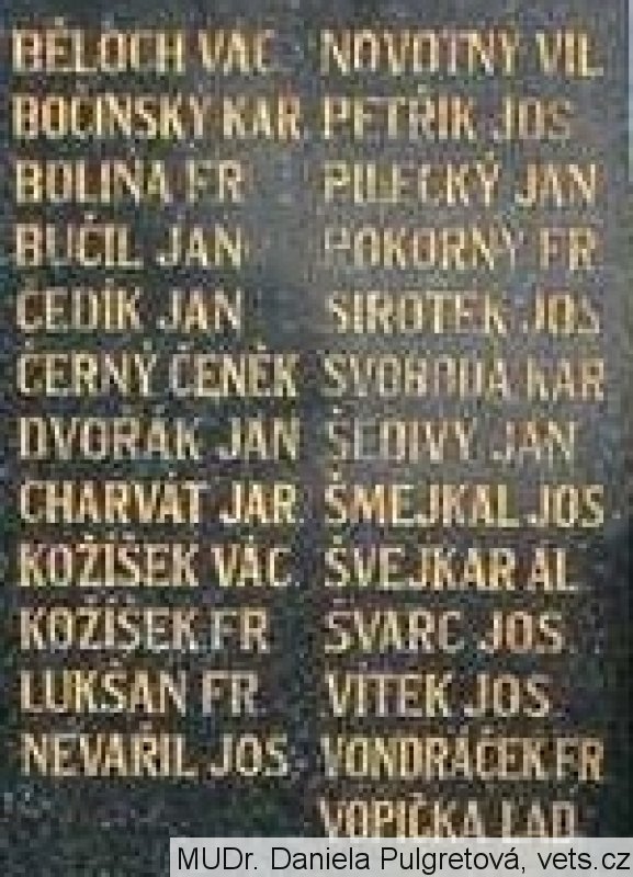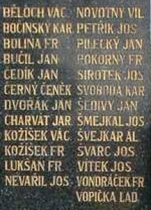 BĚLOCH VÁC., BOČINSKÝ KAR., BOLINA FR., BUČIL JAN, ČEDÍK JAN, ČERNÝ ČENĚK, DVOŘÁK JAN, CHARVÁT JAR., KOŽÍŠEK VÁC., KOŽÍŠEK FR., LUKŠAN FR., NEVAŘIL JOS., NOVOTNÝ VIL., PETŘÍK JOS., PILECKÝ JAN, POKORNÝ FR., SIROTEK JOS., SVOBODA KAR., ŠEDIVÝ JAN, ŠMEJKAL JOS., ŠVEJKAR AL., ŠVARC JOS., VÍTEK JOS., VONDRÁČEK FR., VOPIČKA LAD.