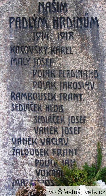 KÁCOVSKÝ KAREL, MALÝ JOSEF, POLÁK FERDINAND, POLÁK JAROSLAV, RAMBOUSEK FRANT., SEDLÁČEK ALOIS, SEDLÁČEK JOSEF, VANĚK JOSEF, VANĚK VÁCLAV, ŽALOUDEK FRANT., POLÁK JAN, VOKŘÁL ANTONÍN, MAZÁČ JOSEF