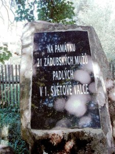 Umístění: Zádub, vpravo v zatáčce silnice do Závišína nad bývalou školouNA PAMÁTKU