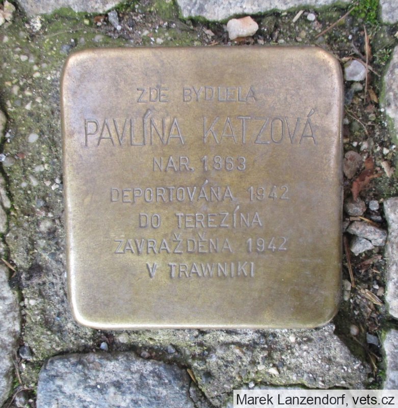 Pavlína (Pavla) Katzová, narozena 24.10.1863, poslední bydliště před deportací Kutná Hora, adresa/místo registrace v Protektorátu Kutná Hora.