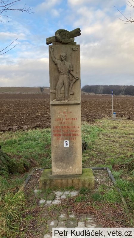 Pilot James E. Hoffman od 52. FG zde zemřel při havárii svého Mustangu dne 22.srpna 1944. Letadlo ve střemhlavém letu narazilo do pole za pomníkem a shořelo. Není jasné, zda byl sestřelen německým stíhačem, nebo havaroval po srážce s druhým Mustangem. James E. Hoffman letěl toho dne ze základny Madna (byla asi 8 km JV od města Campomarino v Itálii) jako doprovod bombardérů při náletu na závody na výrobu syntetického benzínu Blechhammer-jih a Blechhammer-sever, (dnes Blachownia Slaska, část města Kedzierzyn v Polsku) a v Odertalu (dnes Zdieszowice v Polsku). Při této akci ztratila USAF nad Jižní Moravou tří stíhací Mustangy, z nichž další dopadl u Nětčic (5 km od Věžek). Právě blízkost dopadů těchto letadel nabízí neověřenou možnost srážky. Dle popisu na fotografii z exhumace v roce 1946 (z archivu hřbitova Kroměříž), byl James E. Hoffman sestřelen Messerschmittem por. Williho Trauberta – NEOVĚŘENO.