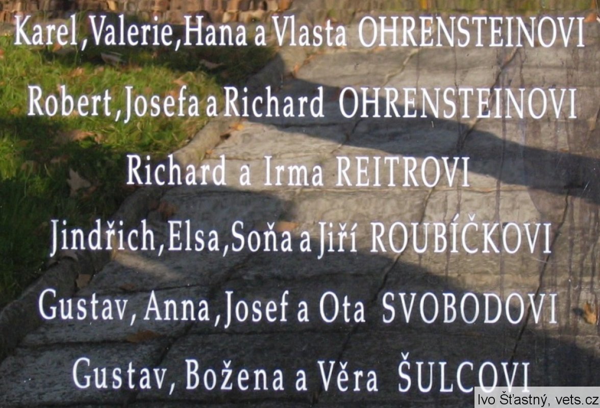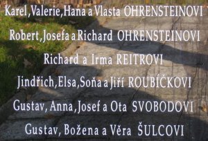 Karel, Valerie, Hana a Vlasta OHRENSTEINOVI, Robert, Josefa a Richard OHRENSTEINOVI, Richard a Irma REITROVI, Jindřich, Elsa, Soňa a Jiří ROUBÍČKOVI, Gustav, Anna, Josef a Ota SVOBODOVI, Gustav, Božena a Věra ŠULCOVI
