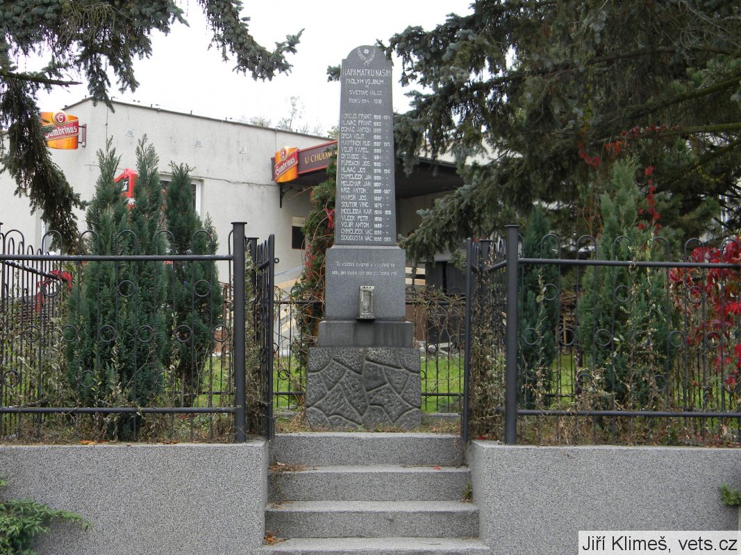 Pomník, dle zápisu v kronice obce (str.332), zhotovil kamenický mistr Brejcha z Tochovic. Odhalen byl 8. července 1923.