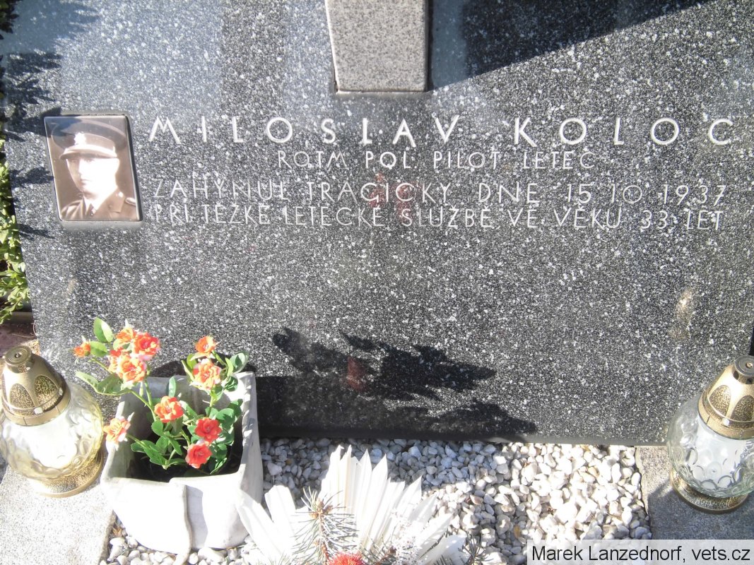 Pilot rtm. Miloslav Koloc zahynul 15.10.1937 při srážce letadel u obce Loučany v okrese Olomouc.
