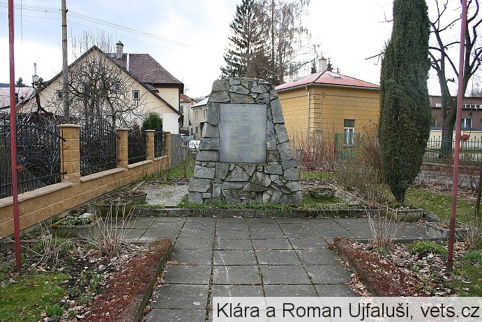Slavnostní odhalení se konalo 8. května 1965, autor Jiří Vočka. Nová nápisová deska asi z roku 1985.