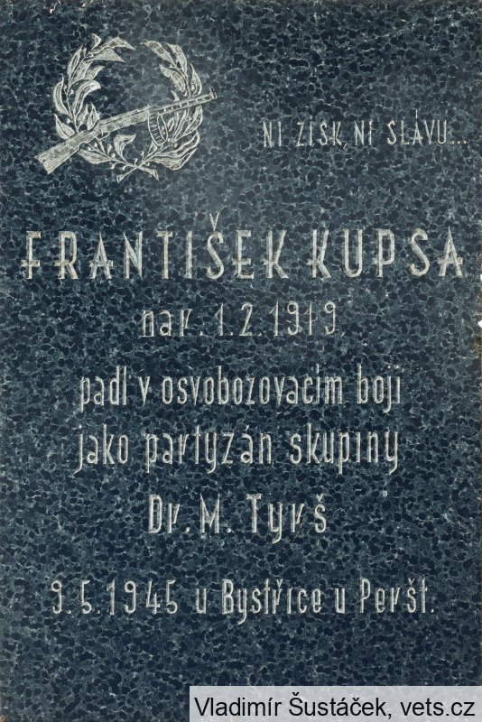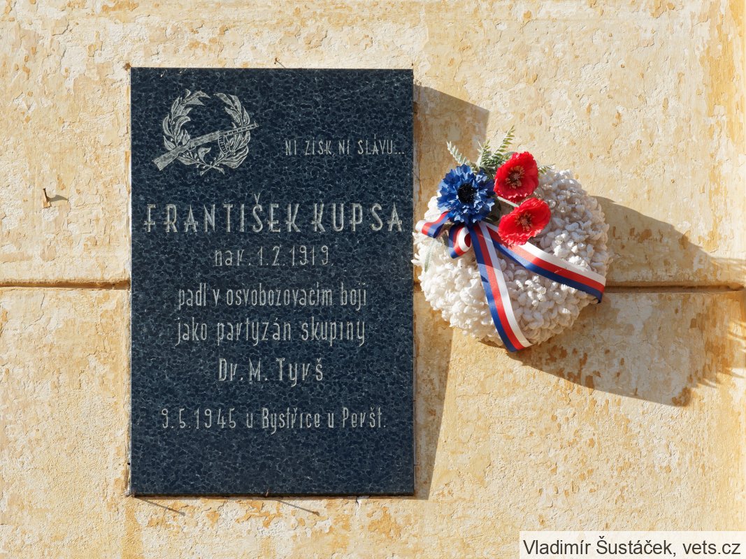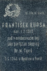 František Kupsa padl před budovou měšťanské školy na dnešní Tyršově ulici v Bystřici nad Pernštejnem. K události došlo podle různých zdrojů 7.5. nebo 8.5., nikoliv 9.5., jak je uvedeno na pamětní desce.
