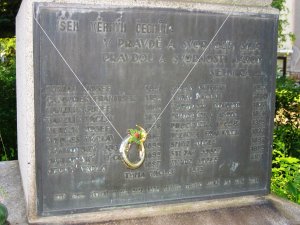 Tuto desku věnovala v jub.roce 1928 památce padlých rodáků Jan Subík, Praha