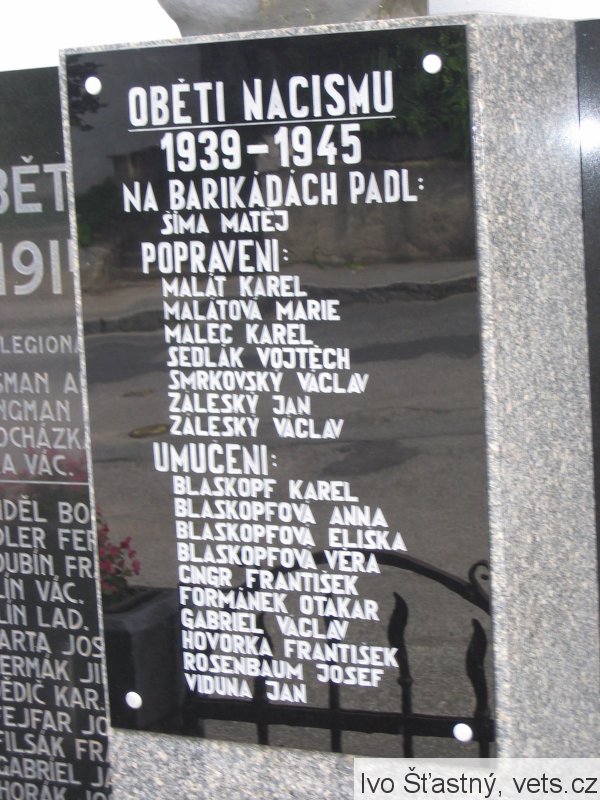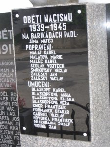 UMUČENI: Blaskopf Karel, Blaskopfová Anna, Blaskopfová Eliška, Blaskopfová Věra, Cingr František, Formánek Otakar, Gabriel Václav, Hovorka František, Rosenbaum Josef, Viduna Jan