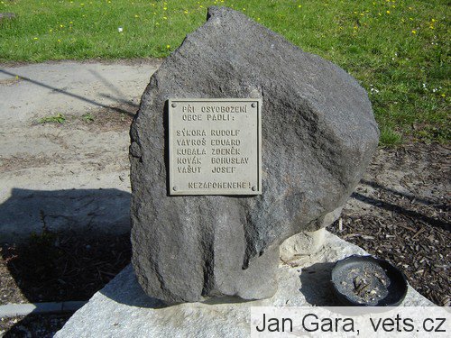 a) Pamětní mosazná deska osazena na přírodním kameni, věnována spoluobčanům, kteří padli při osvobození obce.