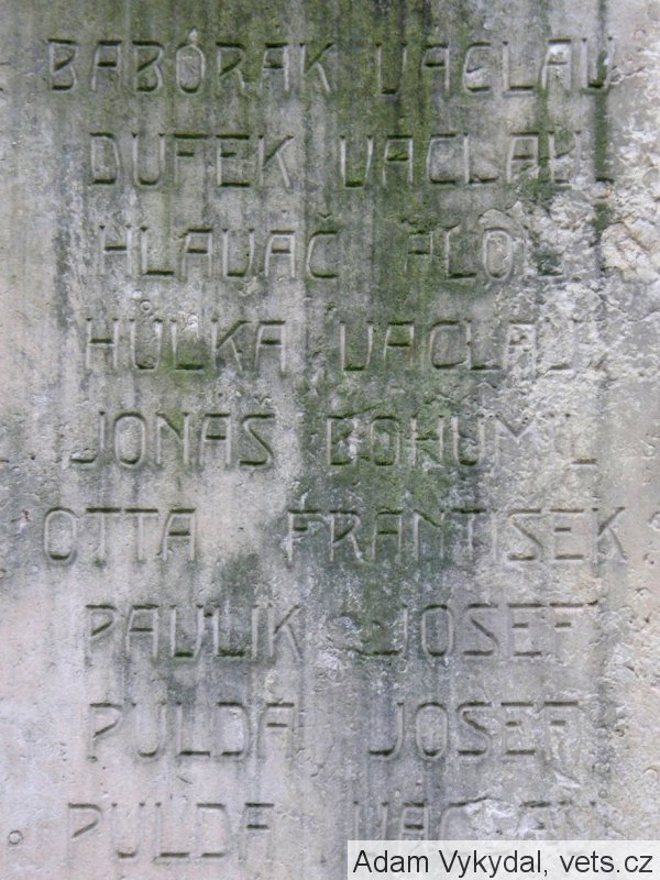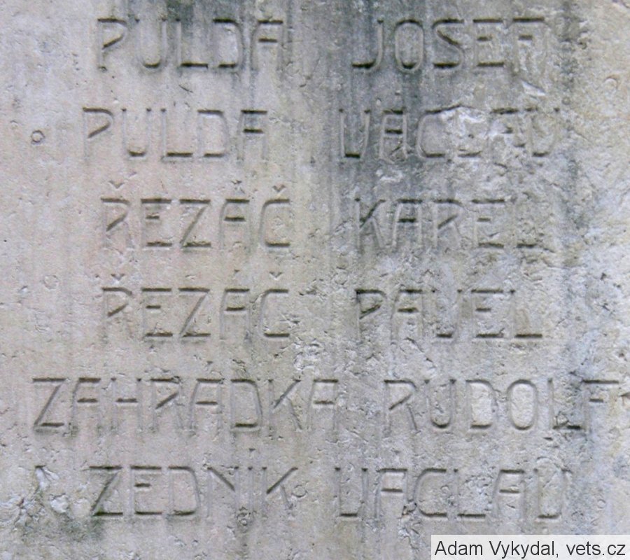 BABORÁK VÁCLAV, DUFEK VÁCLAV, HLAVÁČ ALOIS, HŮLKA VÁCLAV, JONÁŠ BOHUMIL, OTTA FRANTIŠEK, PAVLÍK JOSEF, PULDA JOSEF, PULDA VÁCLAV, ŘEZÁČ KAREL, ŘEZÁČ PAVEL, ZAHRÁDKA RUDOLF, ZEDNÍK VÁCLAV