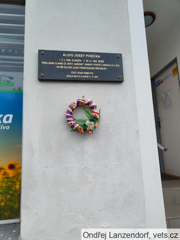 Umístění: Slavičín, náměstí Mezi Šenky 120, stěna domuALOIS JOSEF PIVEČKA