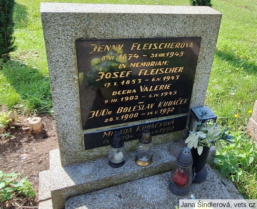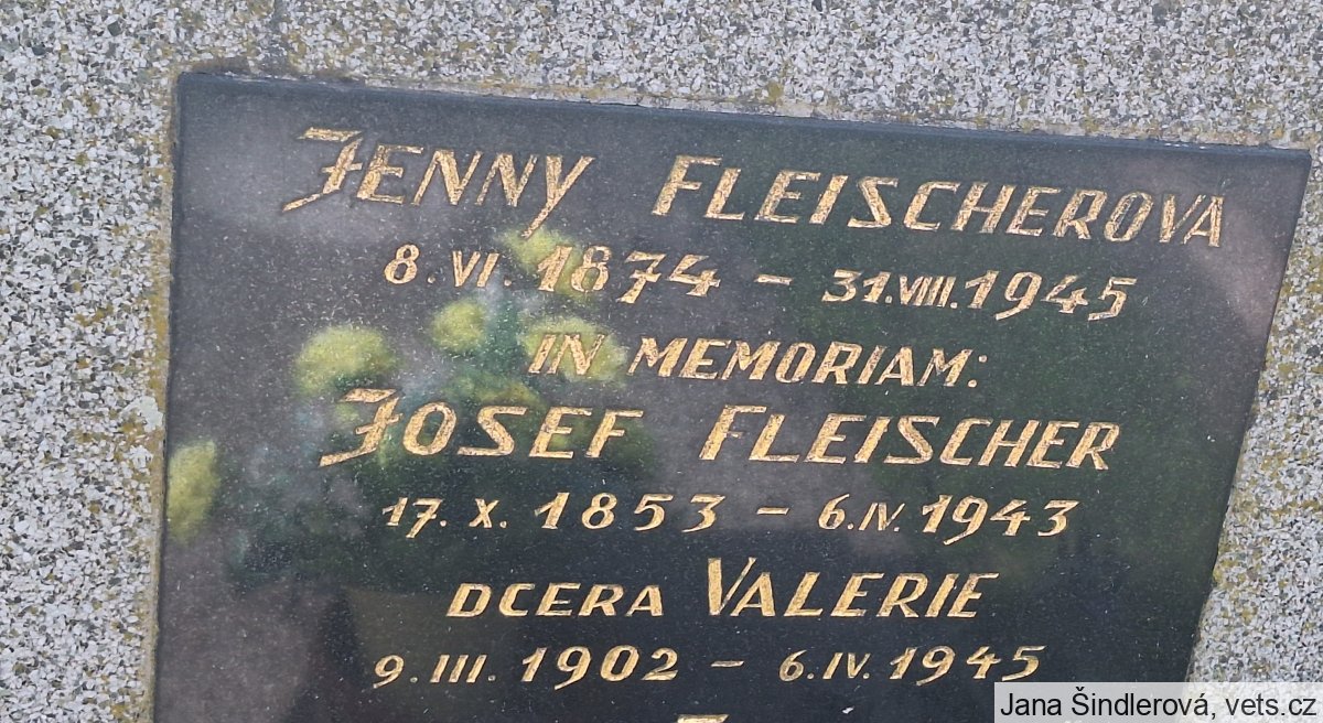 Jenny Fleischerová, nar. 8.6.1874, bytem Šubertovo náměstí č.p. 46, dne 18.12.1942 deportována do Terezína, manželka Josefa Fleischera. V Terezíně se dočkala osvobození, ale dne 30.8.1945 zemřela na následky válečných útrap.