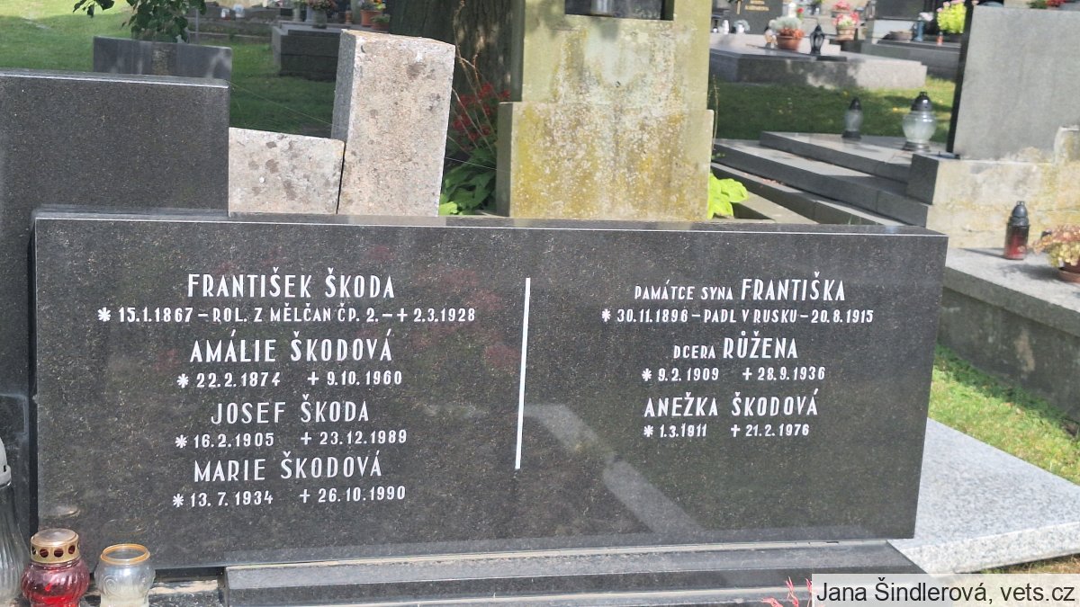 Na pamětní desce Obětem 1. světové války v obci Mělčany je uvedeno: ŠKODA FRANTIŠEK Čp. 2.