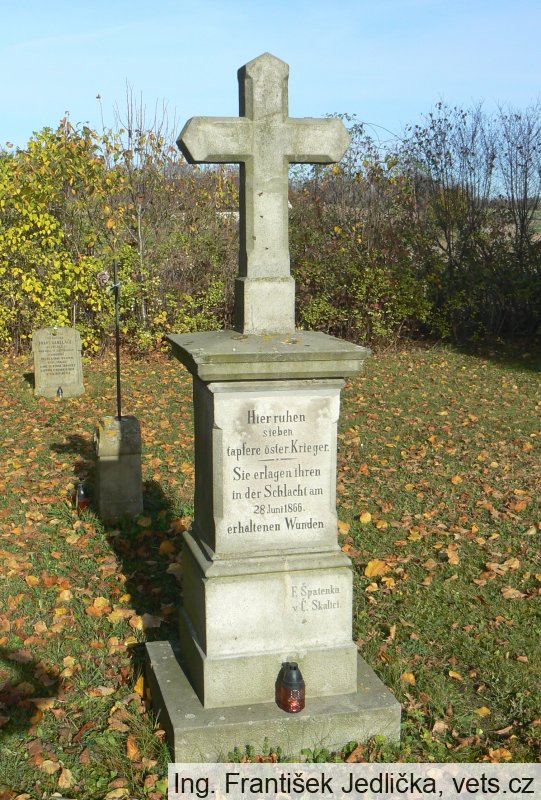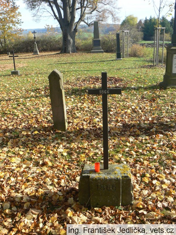 - Po bitvě u České Skalice 28.6.1866 zde byla pohřbena větší část padlých z obou válečných stran prusko-rakouské války. Samotný hřbitov se skládá z celkového počtu 33 pietních míst - několika hrobů, křížů a pomníků. Založen byl roku 1892 tehdejším českoskalickým spolkem. Na celém tehdejším bojišti u České Skalice je podle zřízené infotabulky u hřbitova uvedeno k dnešním dnům 61 pomníků a křížků. O pietní místo se stará Českoskalická historická jednotka 5. praporu polních myslivců. Tehdejší sedmitýdenní válka byla poslední, kdy bylo použito sevřených pěchotních šiků, mohutných výpadů jezdectva a do toho střelba z děl, která vše masakrovala. Rakousko tehdy prohrálo i díky zastaralé výzbroji, kdy pěchota nabíjela ještě pušky zepředu.