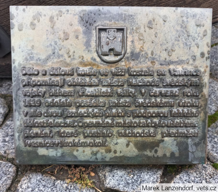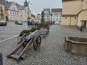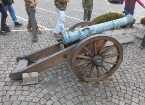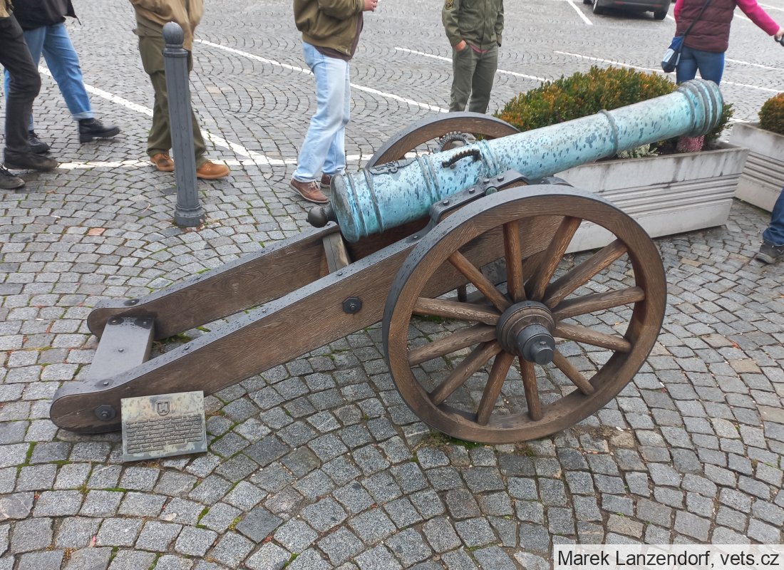 Dělo a dělová koule ve věži kostela sv. Vavřince