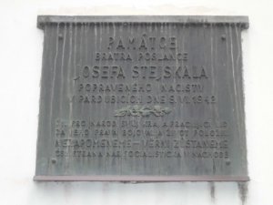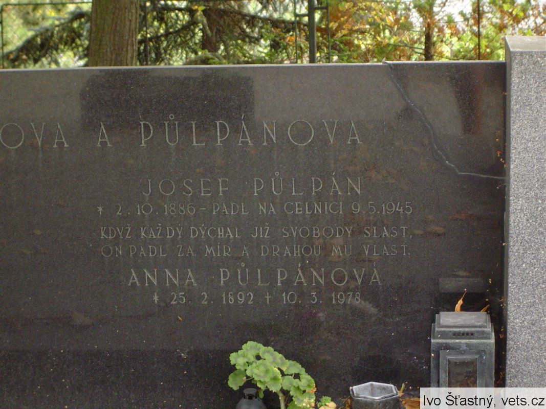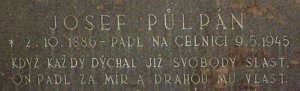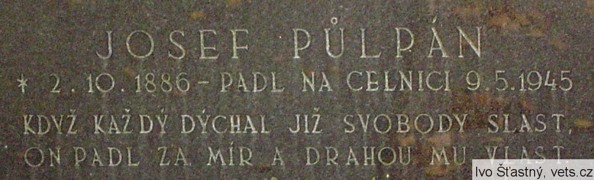 ……dva německé tanky zastavily blízko před celnicí, třetí dojel k železničnímu přejezdu. Začala největší tragedie těchto dnů. Němci počali střílet z děl po vyvěšených vlajkách. Urazili roh budovy a trefili se i do spíže v Horákově bytě. Jiné střely mířily do sklepních oken. Dalším cílem bylo muniční auto. V momentě vzplálo. Našli zde smrt dva sovětští vojáci. Celý dům se otřásal pod nárazem výbuchů, všude je plno prachu, ženy a děti se dusí. Němci dále házejí granáty do služebny a do sklepů. Jedno okno nezůstalo celé. Stále křičí, vyzývají nejdříve ruské vojáky k opuštění budovy. ….na opětovnou výzvu nejdříve vycházeli Rusové a byli ještě na schodech sklepa a dále v domě stříleni. S nimi vyšel i štábní kapitán Josef Půlpán v české uniformě. Toho zastřelili také….