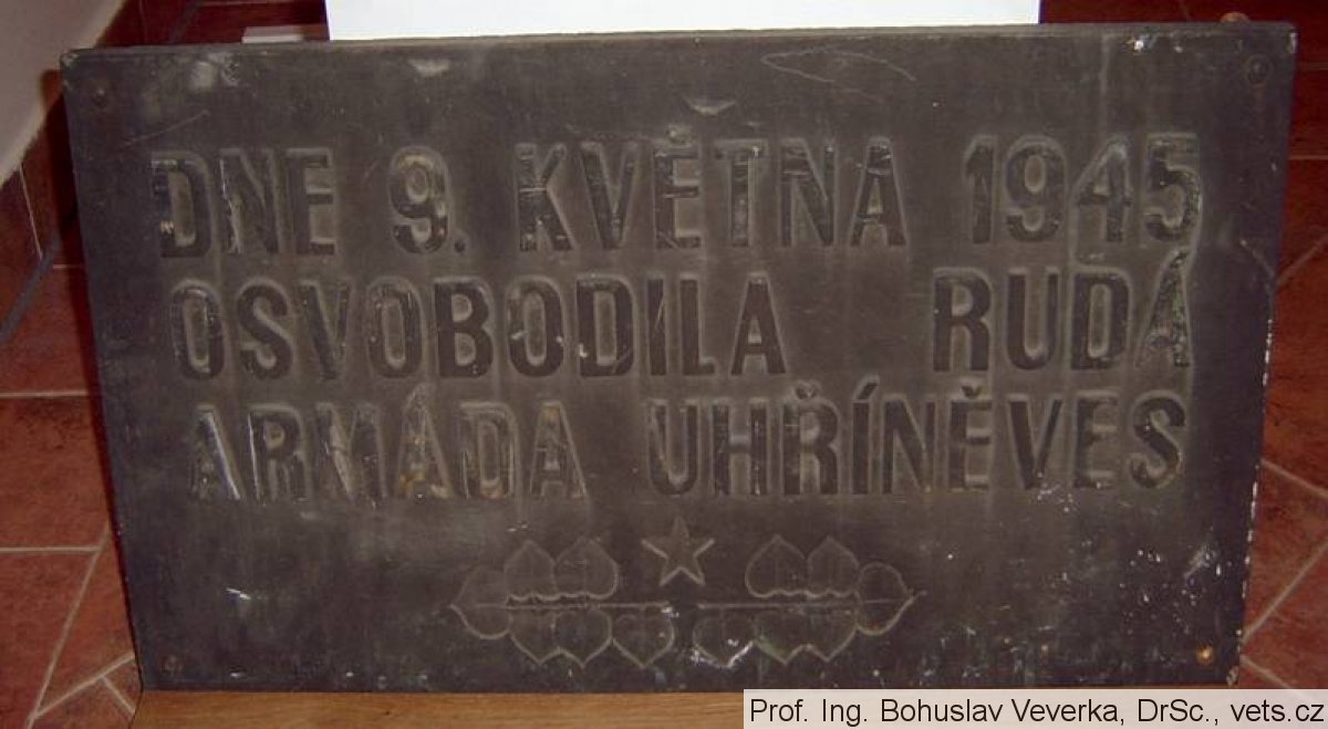 - první deska byla poškozena při opravě fasády a později nahrazena jinou.