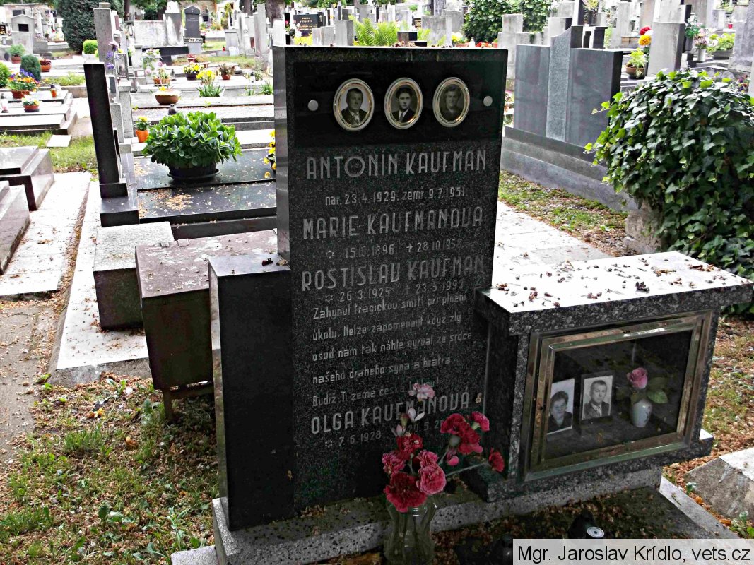 Kaufman Rostislav, Antonín, *26.3.1925, Novokrajev, Volyň, národnost česká, hodnost vojín, kmenové číslo 12.891/M, datum a místo odvodu 23.03.1944, Rovno, číslo protokolu 01/45/2600-Rovno, (zdroj: http://www.vuapraha.cz/fallensoldierdatabase )