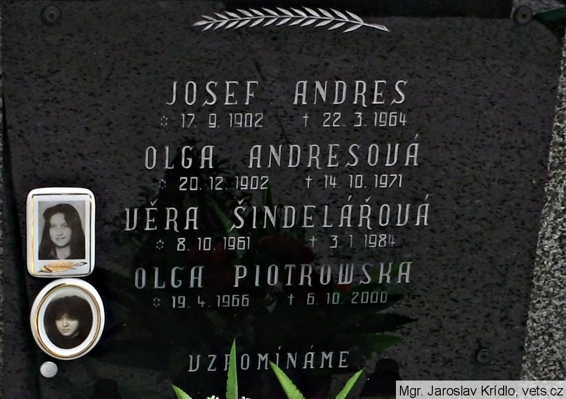 Andres Josef, Štefan, *17.9.1902, Plechov (Plechová), Volyň, národnost česká, hodnost vojín RKKA, kmenové číslo 17.214/M, datum a místo odvodu 05.10.1944 ČSVJ/NT, 09.10.1944 (PR 224/44), Sadagura, číslo protokolu 14.119, (zdroj: http://www.vuapraha.cz/fallensoldierdatabase )