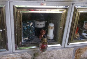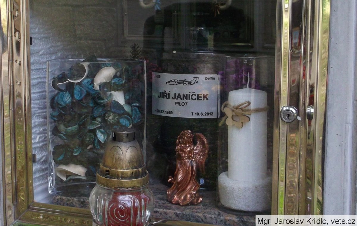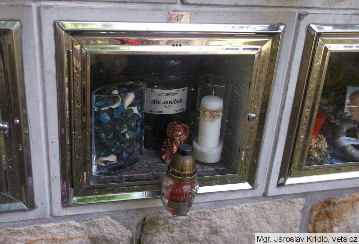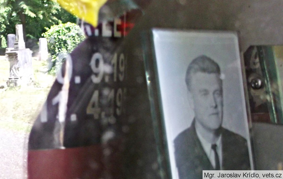 urna vojenského letce ČSLA, ve výslužbě, hodnost major, Ing.; později vedoucí stavebního úřadu Louny, který v osobním volnu prováděl vyhlídkové lety s L-29 Delfín, z civilního letiště Macerka u Žatce; při posledním letu došlo k havárií, kdy zahynuli pilot s cestujícím