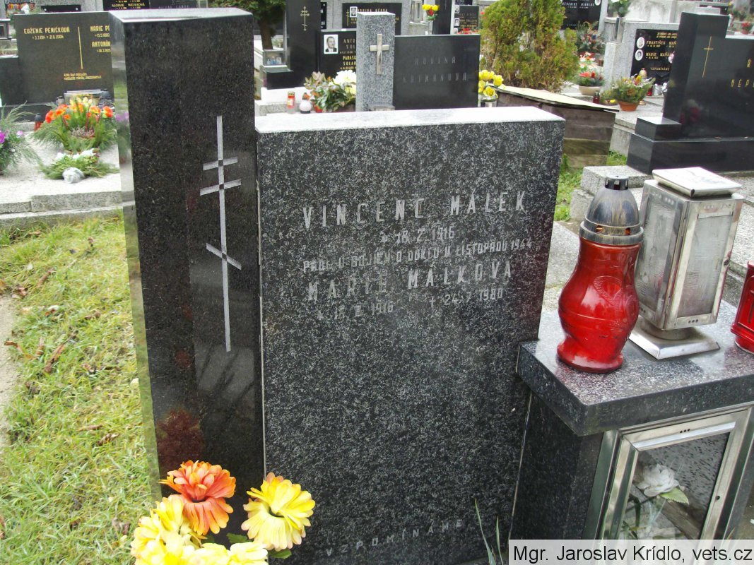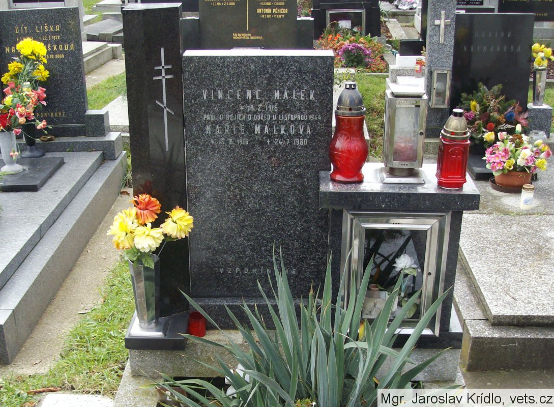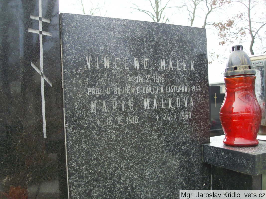 jméno padlého svobodníka Vincenc Málek je uvedeno na 2. pamětní desce z 8 Pamětních desek Obětem 2. světové války, v místě Vyšný Komárnik, Dukelský průsmyk