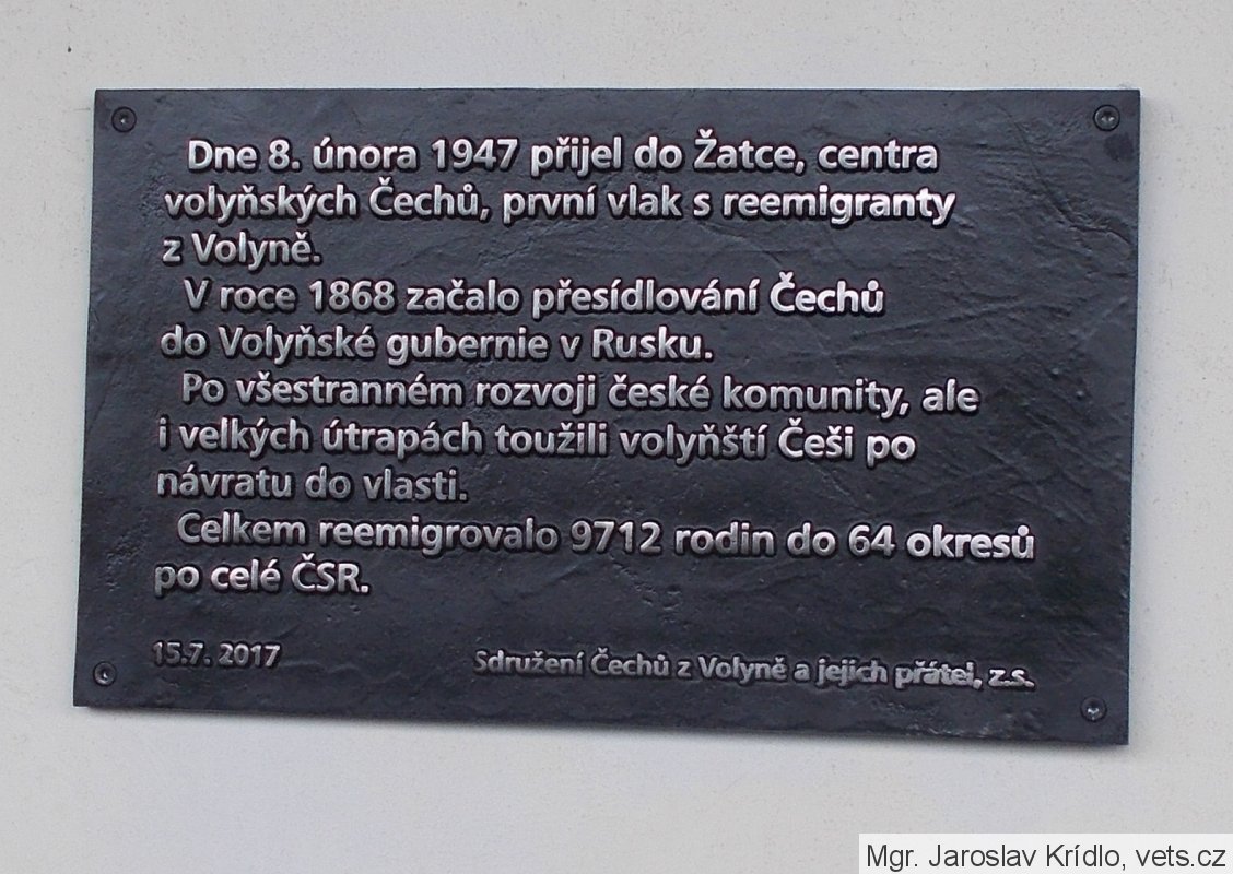 Volyňští Češi, při příležitosti celostátního setkání 15.7.2017, odhalili pamětní desku na žateckém Hlavním nádraží k 70. výročí návratu Volyňských Čechů do vlasti.