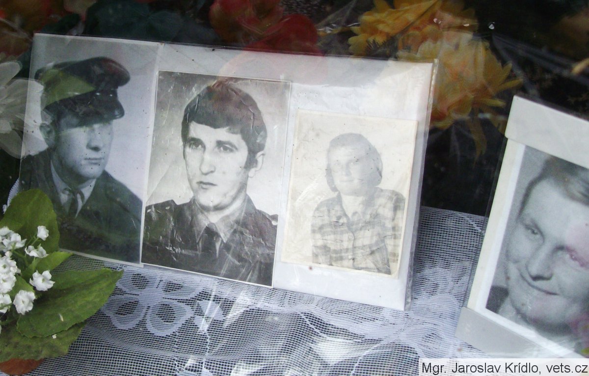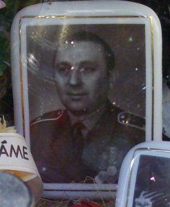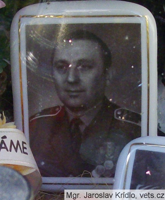 hrob vojáka z povolání, důstojníka Československé lidové armády, foto podplukovníka s řadou udělených medailí a vyznamenání