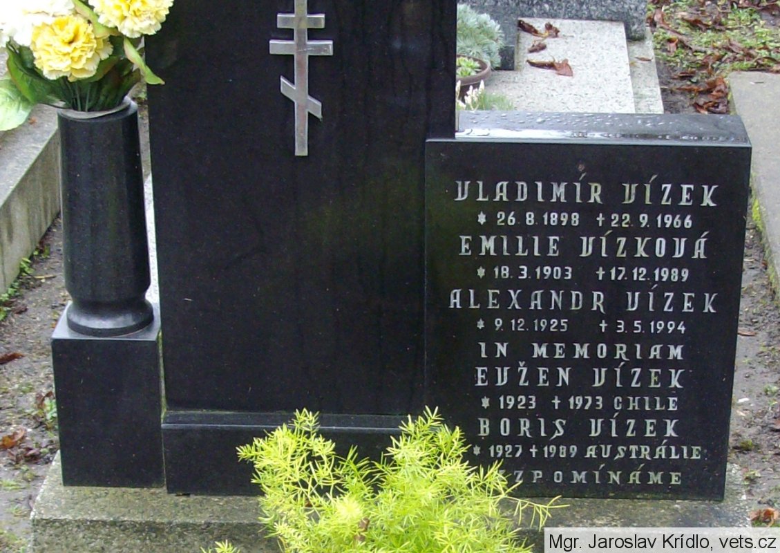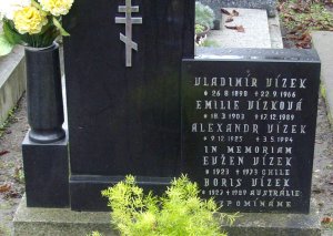 Vízek Alexandr Vladimír: *9.11.1925 (na náhrobku 9.12.) Zdolbunov, Volyň. Kmenové číslo: 12.573/M. Národnost: česká. Datum a místo odvodu: 18.03.1944 Rovno. Číslo protokolu: 01/08/452 – Rovno.