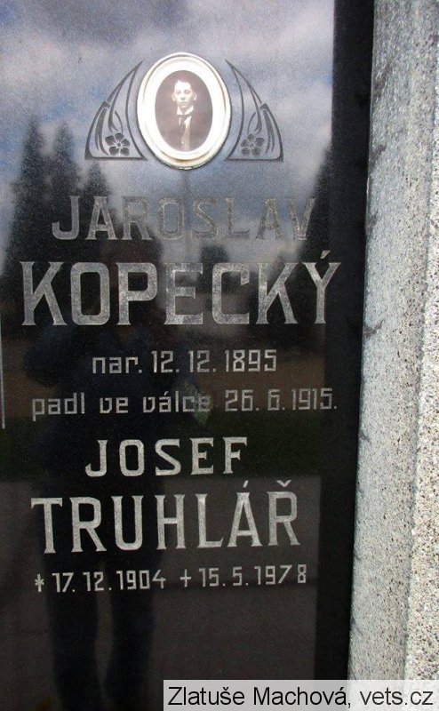Kopecký Jaroslav:*12.12.1895 Osek, okres Duchcov. IR. Nr. 11. Od 26.4.1915 veden jako nezvěstný z bojištĕ. Na kenotafu je datum 26.6.1915. (zdroj: VÚA)