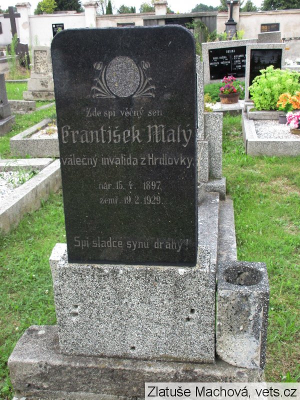 KOHOUT ARNOŠT +31.7.1918 STÁR 26, GOPPERT ANTON +6.12.1917 STÁR 41, STELZER GEORG +27.6.1917 STÁR 41, KULOVANÝ JAN +8.11.1916 STÁR 37, TRENKA FERDINAND +22.8.1916 STÁR 29, KRATOCHVÍL FR. +10.4.1916 STÁR 33, BÖHM ADAM +25.3.1916 STÁR 37, HÖHM JOSEF +22.1.1916 STÁR 43, LUKÁŠ JAN +25.12.1915 STÁR 37, NEUBERT WILIBALD +29.9.1915 STÁR 28, PEHR JULIUS +8.2.1915 STÁR 23, MOLINARI RUDOLF +2.5.1915 STÁR 20, ZILGER JOSEF +24.4.1916 STÁR 31, WEBER FRANZ +2.9.1917 STÁR 37, SENGER JOSEF +11.4.1918 STÁR 38, KAISER VALENTIN +7.7.1918 STÁR 20, ROTHE EMIL +2.12.1918 STÁR 39, VOGEL JOSEF +24.1.1919 STÁR 22, PFEIFER ANT. +25.4.1919 STÁR 41, KVAPIL JOSEF +19.5.1920 STÁR 23 LEGIONÁŘ