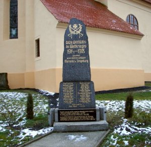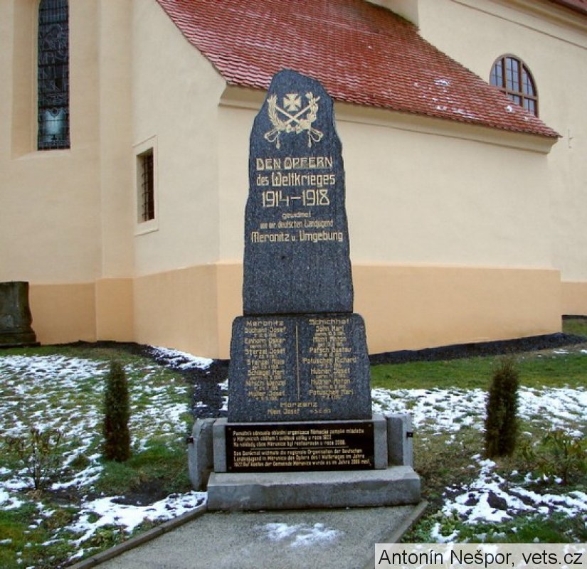 Das Denkmal widmete die regionale Organisation der Deutschen Landesjugend in Měrunice den Opfern des 1. Weltkrieges im Jahre 1922 Auf Kosten der Gemeinde Měrunice wurde es im Jahre 2006-rest.