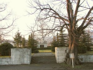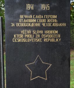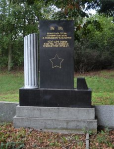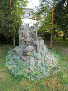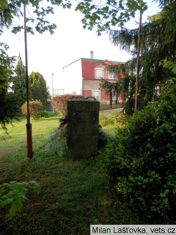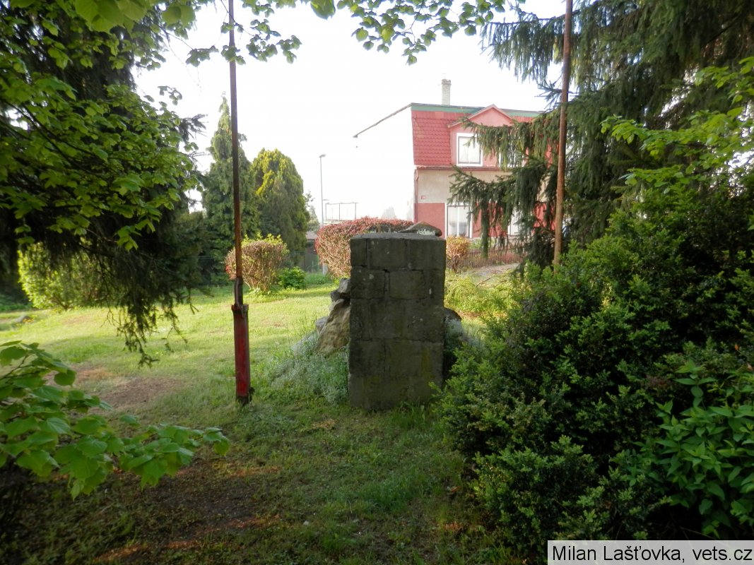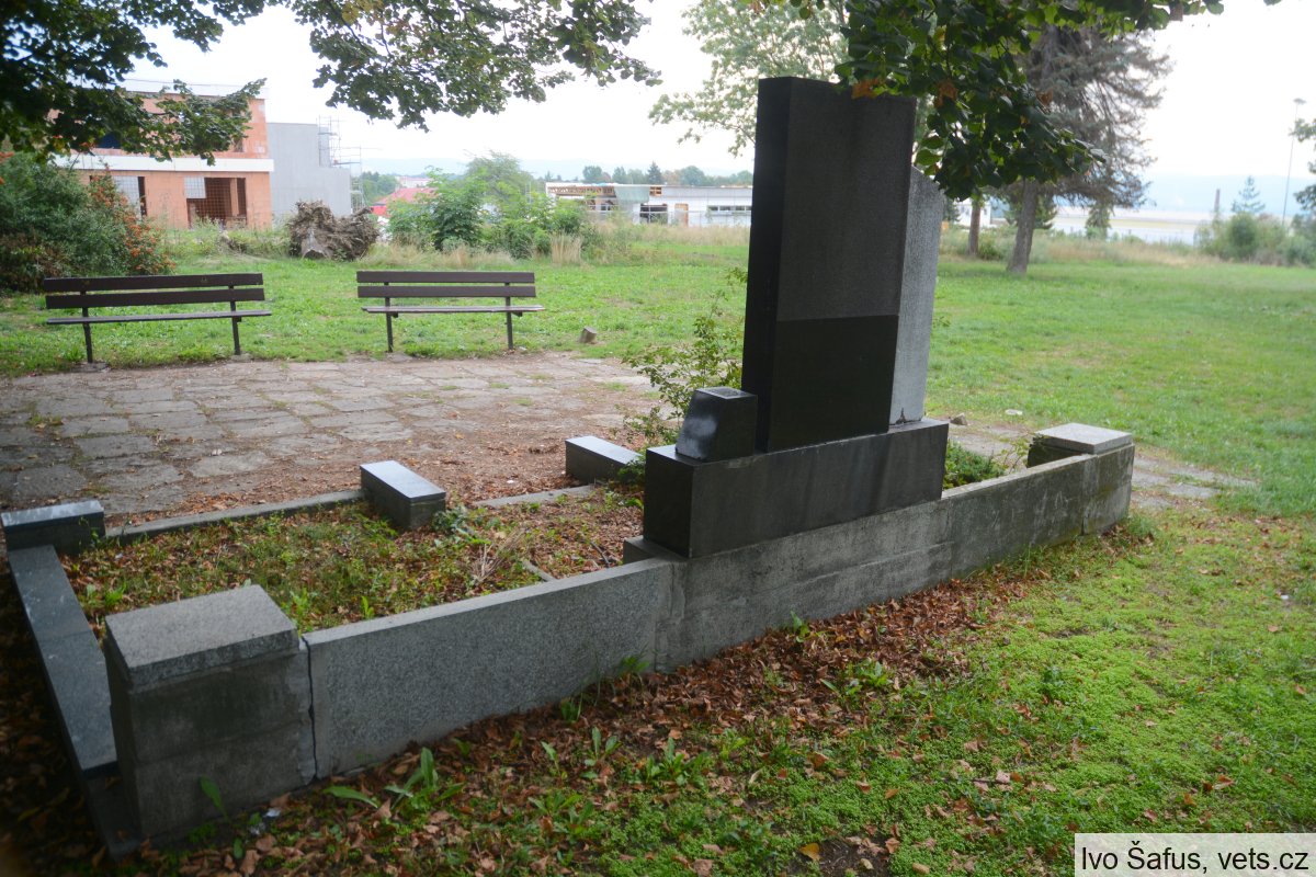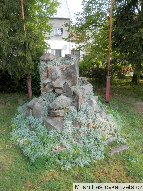 podle místních stávala na pomníku socha partyzána (snad se zbraní), po roce 1989 socha zmizela