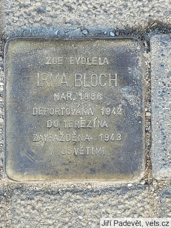 Irma Bloch byla do Ghetta Terezín deportována 16.7.1942 transportem AAr, do Auschwitz Birkenau potom transportem Dm 6.9.1943.
