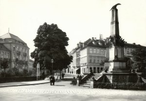 Na jeho místě je dnes kruhový květinový záhon ve tvaru půdorysu někdejšího vojenského pomníku.