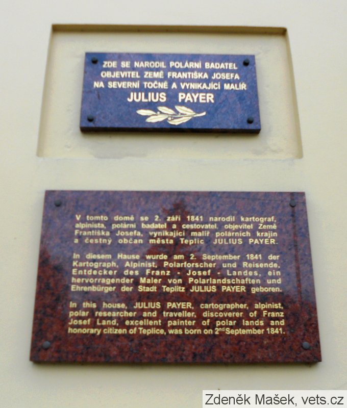 Umístění: Teplice, U Hadích lázní, rodný dům Julia Payera, dnes hotel PayerZDE SE NARODIL POLÁRNÍ BADATEL
