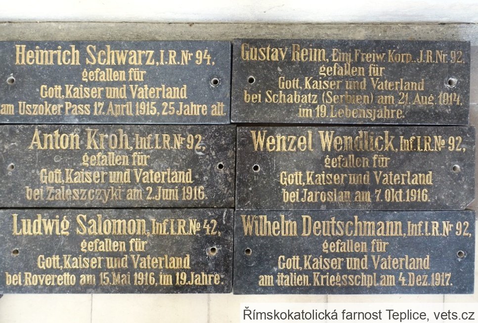 Umístění: Teplice, Zeyerovo náměstí, kostel sv. AlžbětyNápis: