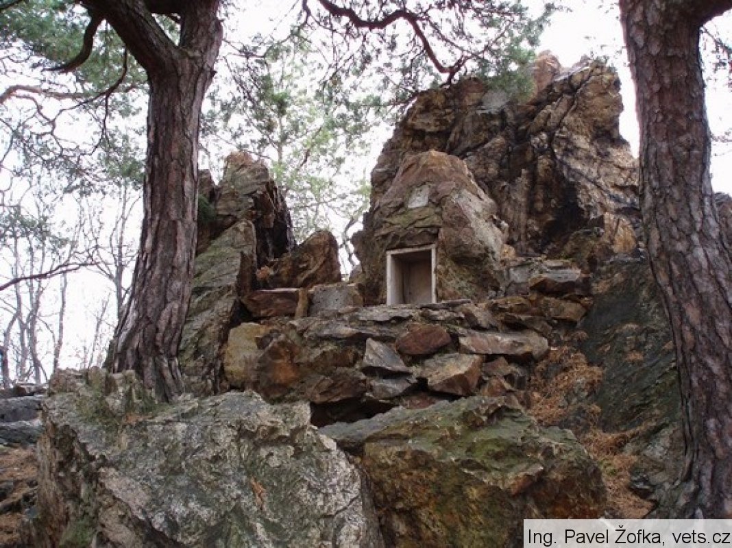 Umístění: Černolice, od SV rohu fotbalového hřiště po pěšince (červená turistická značka) do kopce, asi 5 minutNápis: