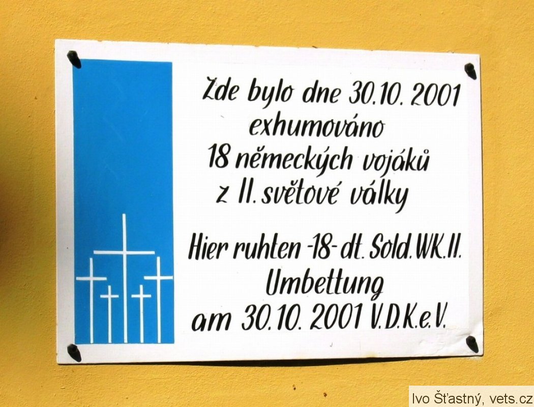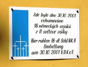tabulka o exhumaci 18 německých vojáků; pevnostní část (u tureckých hrobů) (zdroj CEVH MO ČR)