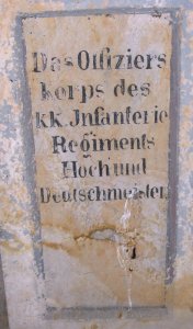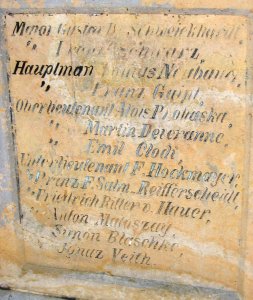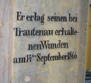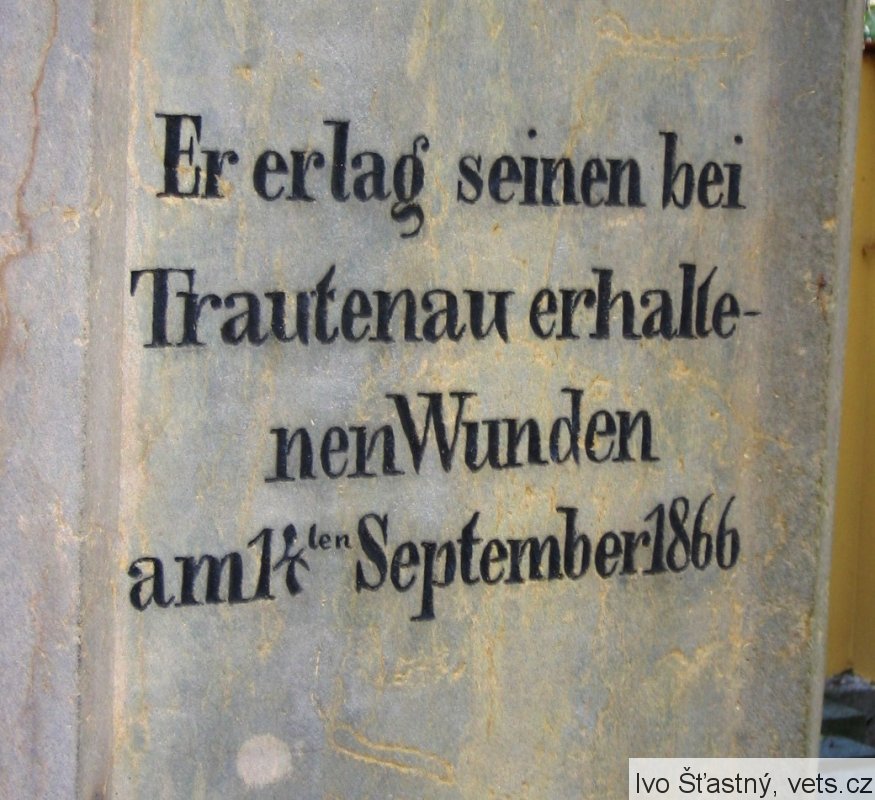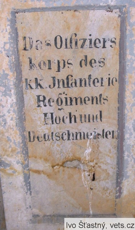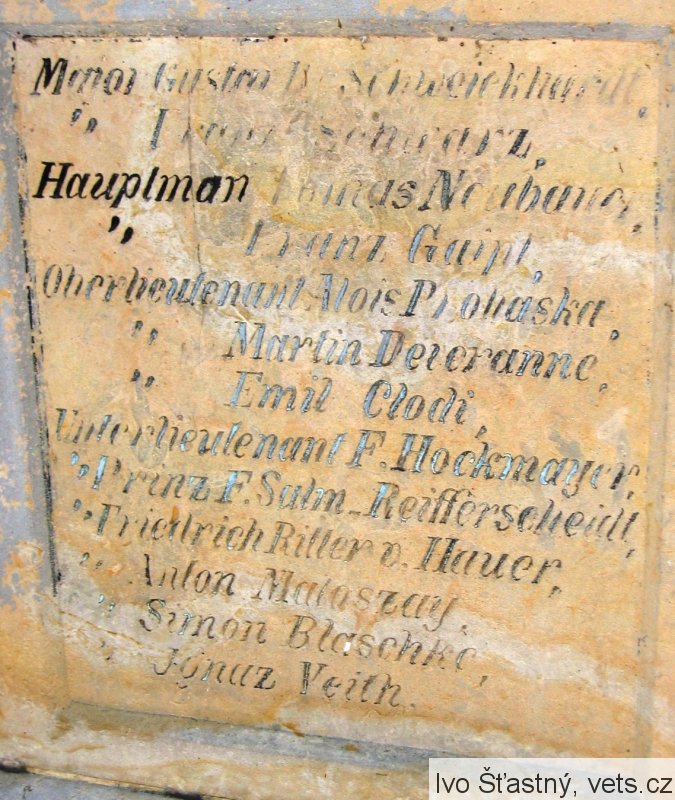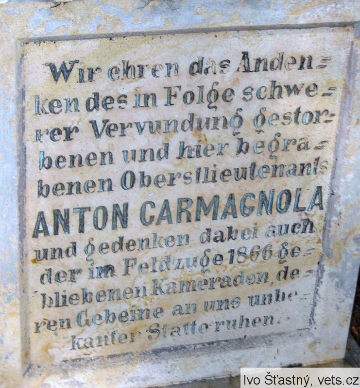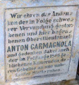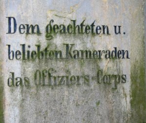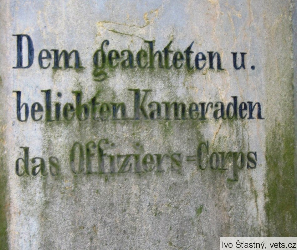 částečně nečitelný text; jedná se o padlé důstojníky války 1866, pohřbené na neznámém místě (autor snímku)