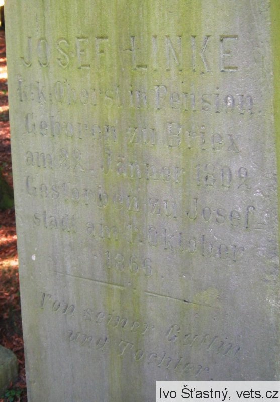 hrob Josefa Linkeho; KP 39786/6-1778/57; hrob č. 105, pevnostní část IV (zdroj databáze CEVH MO ČR)