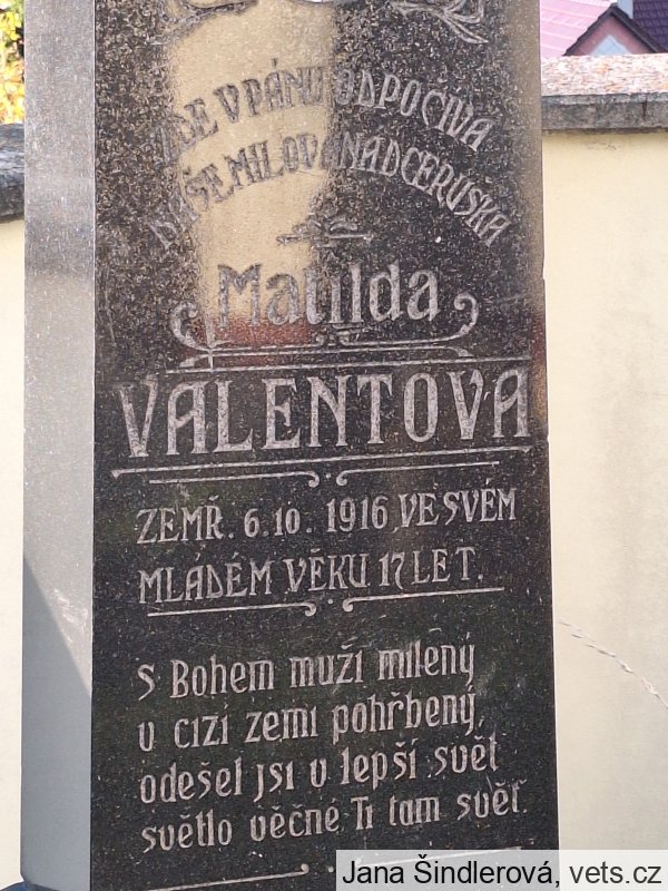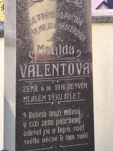 Na náhrobku je uvedeno jméno jeho dcery, Matildy Valentové, která zemřela 6.10.1916 ve věku 17 let.