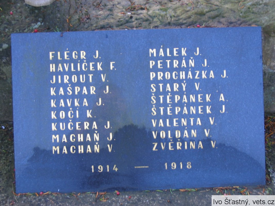 Václav Valenta se narodil 30.1.1872 v Rozhovicích. Když dosáhl věku 21 let, nastoupil vojenskou službu k 12. pěšímu pluku v Čáslavi. Po demobilizaci se vrátil domů, oženil se a byl jmenován okresním cestářem. Narodila se mu dcera Matilda a syn Josef. Po vyhlášení války narukovat nemusel, jelikož byl starší 37 let, ale po vypsání všeobecné mobilizace musel nastoupit do zbraně i on. Opět nastoupil k výše uvedenému pluku a byl odvelen na srbsko-rakouské bojiště. Po mnohých útrapách, byl přeložen na italsko- rakouské bojiště. V roce 1916 mu zemřela jeho milovaná dcera Matilda. Zprávu o její smrti se již nedozvěděl. Manželce byla zaslána zpráva, že vojín Václav Valenta padl v boji u Sand Marko, okr. Gorice (Itálie) a byl pohřben na tamním válečném hřbitově.