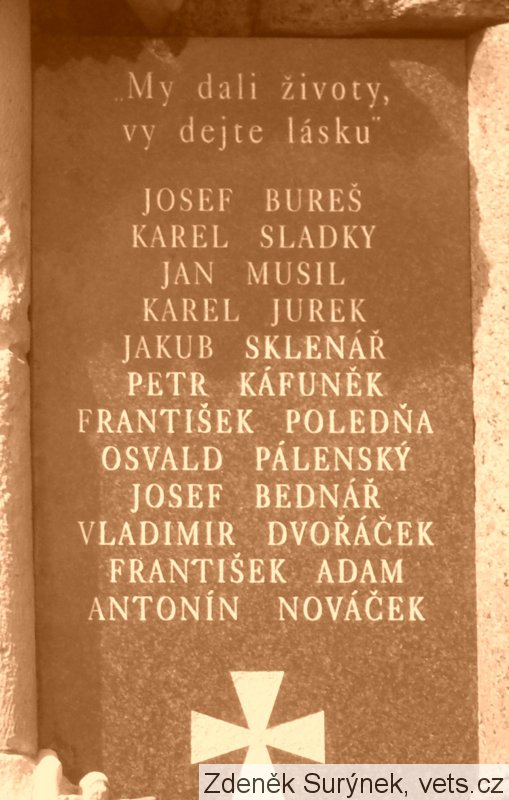 JOSEF BUREŠ, KAREL SLADKÝ, JAN MUSIL, KAREL JUREK, JAKUB SKLENÁŘ, PETR KÁFUNĚK, FRANTIŠEK POLEDŇA, OSVAL PÁLENSKÝ, JOSEF BEDNÁŘ, VLADIMIR DVOŘÁČEK, FRANTIŠEK ADAM, ANTONÍN NOVÁČEK