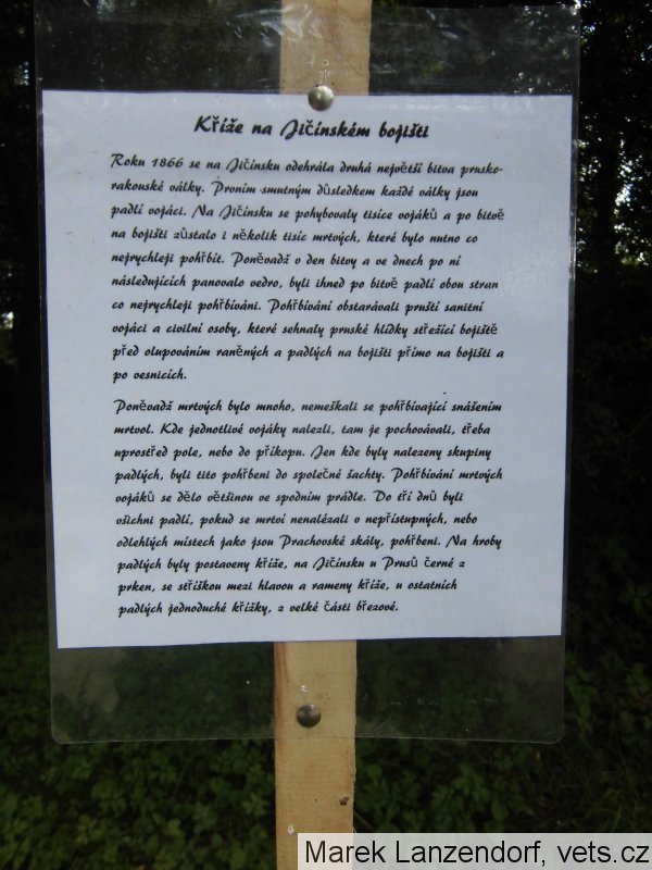 Roku 1866 se na Jičínsku odehrála druhá největší bitva prusko-rakouské války. Prvním smutným důsledkem každé války jsou padlí vojáci. Na Jičínsku se pohybovaly tisíce vojáků a po bitvě na bojišti zůstalo i několik tisíc mrtvých, které bylo nutno co nejrychleji pohřbít. Poněvadž v den bitvy a ve dnech po ní následujících panovalo vedro, byli ihned po bitvě padlí obou stran co nejrychleji pohřbíváni. Pohřbívání obstarávali pruští sanitní vojáci a civilní osoby, které sehnaly pruské hlídky střežící bojiště před olupováním raněných a padlých na bojišti přímo na bojišti a po vesnicích.