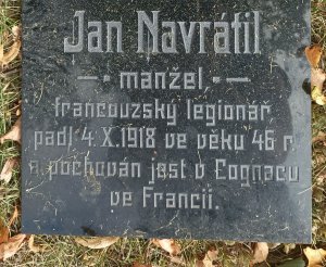 Jeho jméno je též uvedeno na Pomníku Obětem 1. světové války v Hroubovicích.