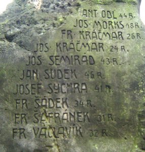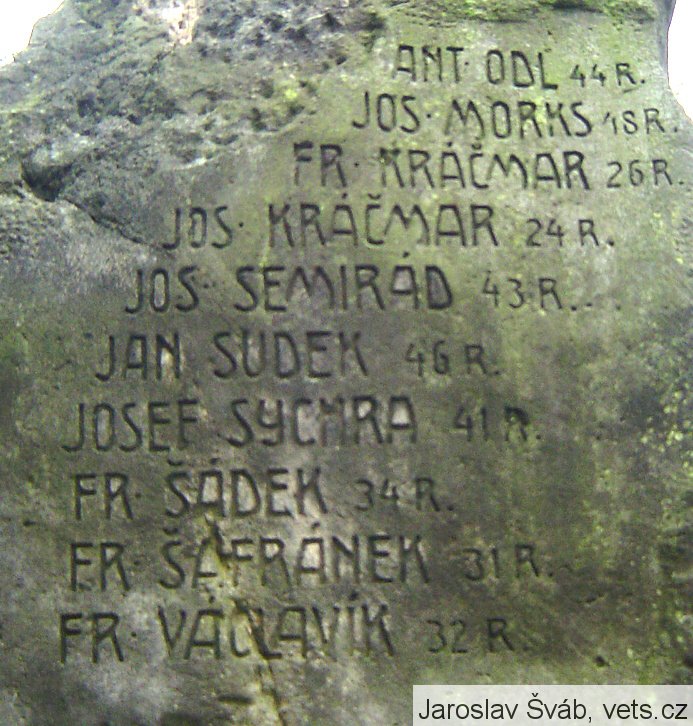ANT. ODL 44 R., JOS. MORKS 48 R., FR. KRÁČMAR 26 R., JOS. KRÁČMAR 24 R., JOS. SEMIRÁD 43 R., JAN SUDEK 46 R., JOSEF SYCHRA 41 R., FR. ŠÁDEK 34 R., FR. ŠAFRÁNEK 31 R., FR. VÁCLAVÍK 32 R.