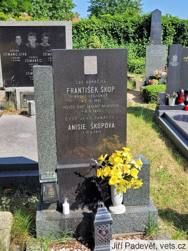 František Škop, nar. 2.10.1891, nebyl přísluš. armády, ale jako bývalý legionář se zapojil do povstání českého lidu a byl popraven dne 6.5.1945.
