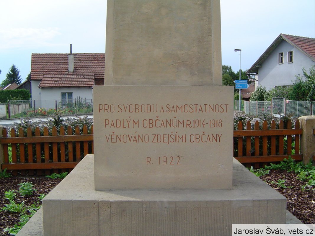 Umístění: Třtěnice, před rozcestím na Vysoké Veselí a Jičín při příjezdu od Nového BydžovaNápis: