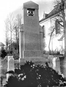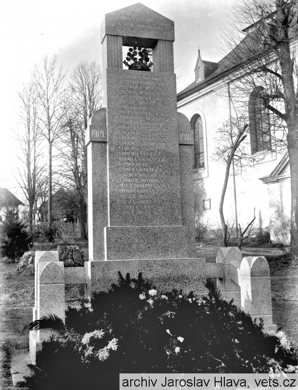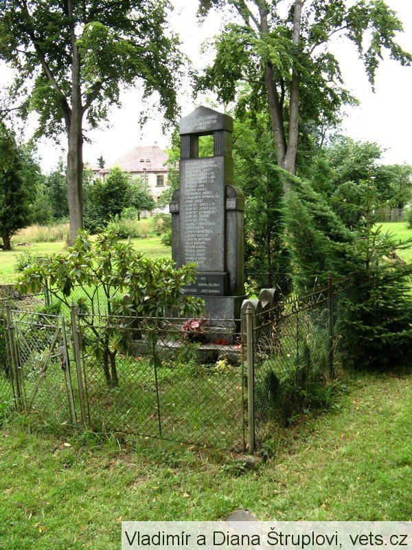 Památník z leštěné žuly nese jména padlých a letopočet 1914-1918. Ve vrcholovém tympanonu nápis "Padlým za svobodu věnuje občanstvo r. 1921". Později byl památník doplněn deskou se čtyřmi jmény obětí nacistické okupace 1939 - 1945.