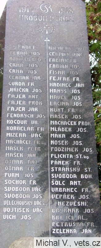 BERAN JOS., BOHÁČEK BED., CRHA JOS., CERMAN JAR., ČURDA FR., JIŘIČKA JOS., FAJER ANT., FAJER PROK., FAJER JAR., FENDRYCH JOS., KOCOUR VIL., KORBELÁŘ FR., MIZERA VÁC., MACHÁČEK FR. LEG., MAŠEK PETR, MAŠEK JAN, OTMAR ANT., OTMAR FR., PURM JOS., SOCHOR FR., SVOBODA VÁC., SVOBODA JOS., VELECHOVSKÝ VÁCL LEG., VOJTÍŠEK VÁC., VÍCH JOS.